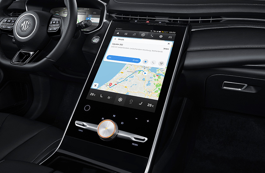 Δεν χρειάζεται να ανησυχείτε για την αυτονομία – δείτε ακριβώς πόση απόσταση μπορείτε να διανύσετε καθώς και πληροφορίες για σημεία φόρτισης σε πραγματικό χρόνο στη διαδρομή σας. Επιπλέον, μπορείτε να λαμβάνετε οδηγίες πλοήγησης να ακούτε μουσική σε live streaming, να πραγματοποιείτε τηλεφωνικές κλήσεις και να ελέγχετε το όχημά σας κατά τη διάρκεια του ταξιδιού hands-free, μέσω φωνητικών εντολών.